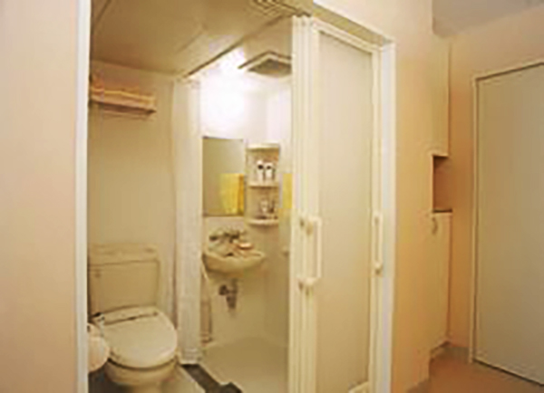 食堂・浴室(一般・リフト・ストレッチャー)・各階居有トイレ、洗面・各居室トイレ、洗面・健康管理室・談話室・面談室・事務室・洗濯室・汚物処理室(屋外)・介護、看護職員室・機能訓練室(多目的ホール)・理美容室・娯楽室・エレベーター(2基~ストレッチャー搬入可・スプリンクラー・消化設備等・緊急通報装置等緊急連絡(居室・共有トイレ及び浴室)