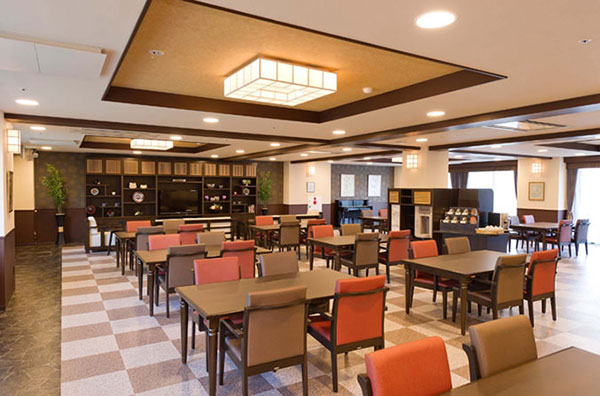エントランスロビー、ラウンジ、ダイニング(食堂) 兼 機能訓練コーナー、ファミリーダイニング、浴室(個浴・特殊浴)、健康管理室、相談室、洗濯室、トイレ、モニターカメラ、浴室・トイレに呼び出しボタン、モニターカメラ、エレベーター内に非常電話・遠隔監視装置 他
