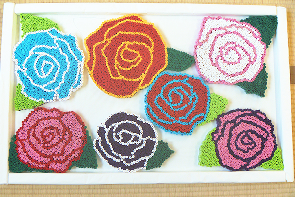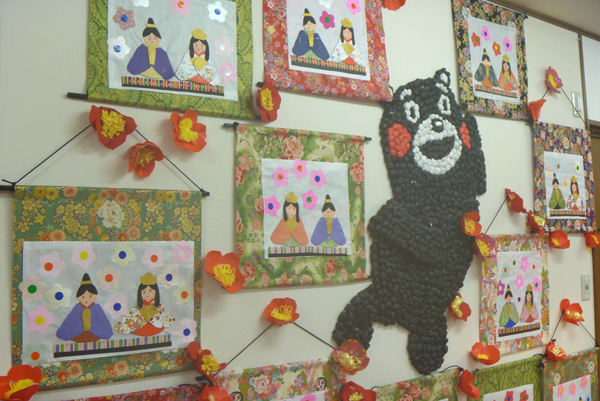 桃の節句の飾り付けです。利用者さま一人一人違った個性豊かな作品が並んでいます。とってもキレイですね。