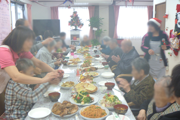 年間の一大イベント、クリスマス会!ごちそうが並びます。
