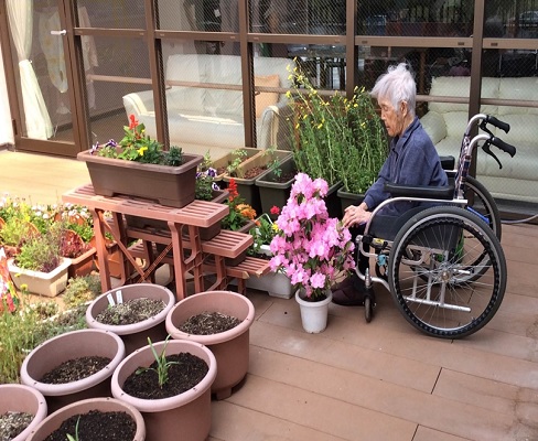 認知症高齢者を対象に、日常生活のお世話や健康管理を行っております。又、2階バルコニーには園芸コーナーを設け、ご利用者様に季節感を味わって頂くと共に、作業療法の一環として園芸活動などに取り組んでいます。