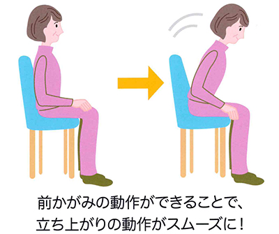 立ち上がりにの際に腹筋を使えるようになり立ち上がりの動作が楽になります。