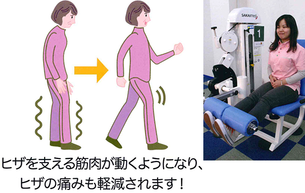 500グラムずつ重さを調節できる特別なマシンだから、洋服を着るくらい軽い運動で、的確なリハビリができます。