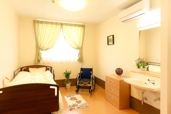 設備 介護電動ベッド、チェスト、エアコン、暖房便座付トイレ、ナースコール、防炎カーテン、布団一式(リネン定期交換)