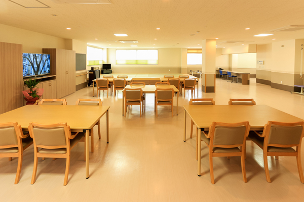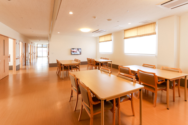 食堂・談話室は、入居者様や面会に来たご家族様とゆったりとお寛ぎ頂けるできるスペースを確保しておりますので交流の場としてもご活用ください。