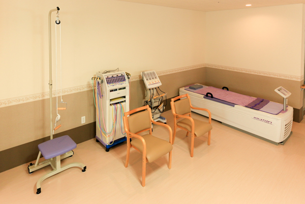 ・ウオーターベッド、ホットパック、低周波治療器、平行棒、滑車等のリハビリ機器を完備しています。