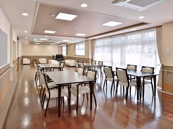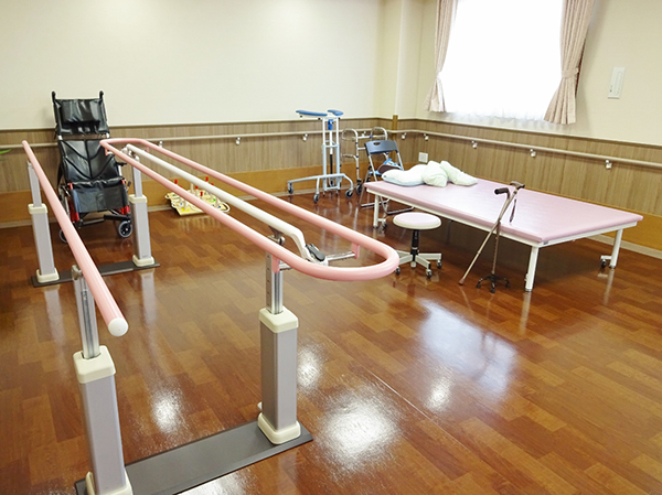 機能訓練の場をリビングと隣接させ、日常的にリハビリを行うことができるような作りとなっています。