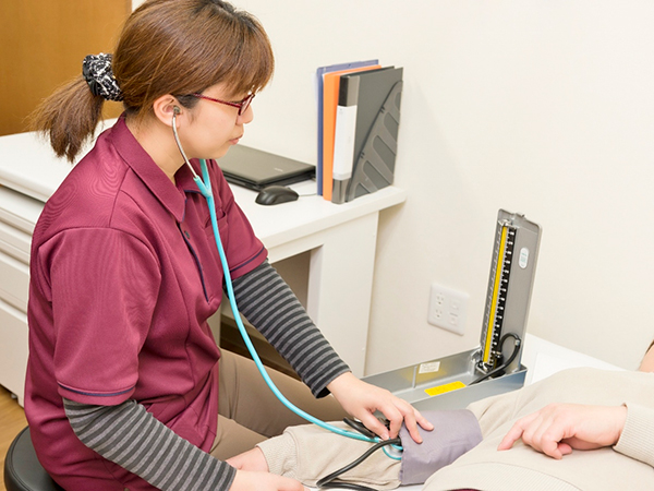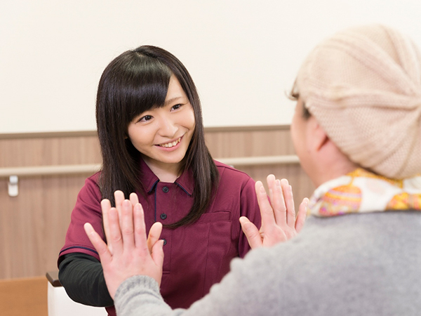 無理なく楽しみながらそれぞれのペースで健康の維持ができるよう、専任の理学療法士がリハビリ計画をたて、個別リハビリをご提供します。スタッフ全員に生活リハビリの研修を行い寝たきりの防止に務めます。