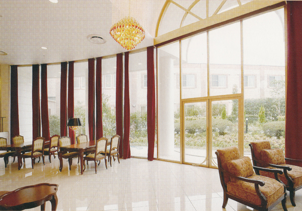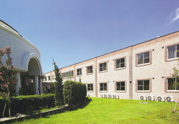 2,000坪の敷地内に建つのは白い本館と煉瓦造りの新館。さまざまな共用施設を備えた本館には、お二人での入居もできる特別室など、広さのある居室を確 保。お一人入居用の居室が多い新館は、クッション性のある床やペアガラスなど最新の記述で住み心地の良さを高めています。