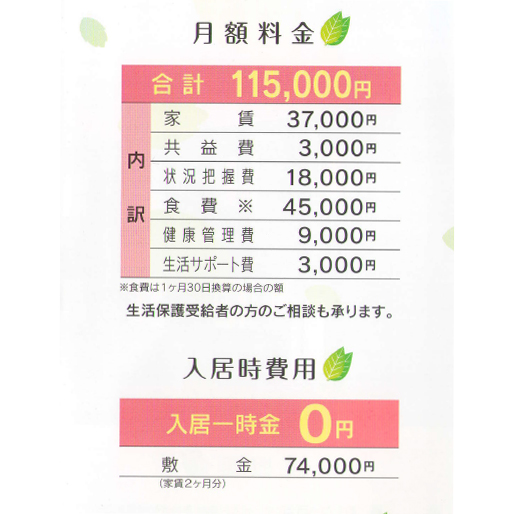 住宅型施設としては、持病のある方、お体がご不自由な方など介護度の重い方のご入居にも対応し、生涯を過ごしていただける施設であることが特徴です。