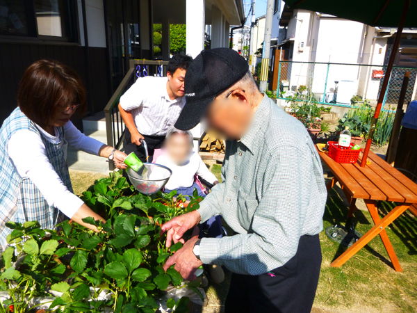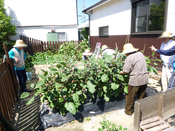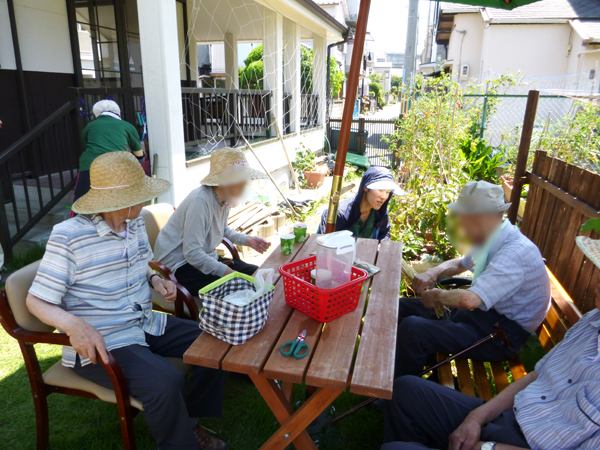園芸活動では足や腕の筋力低下防止、特に指先のリハビリには有効ですから、必要に応じて個別機能訓練にも園芸療法を取り入れます。