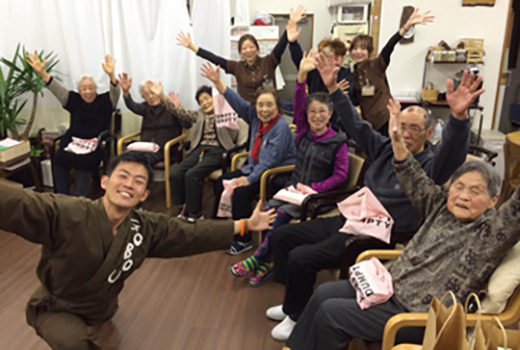 GOBOU先生プロデュース!椅子に座ってできる介護予防体操をみんなで行うことで楽しく体を動かします。メニューは日替わりなので楽しく継続できています。