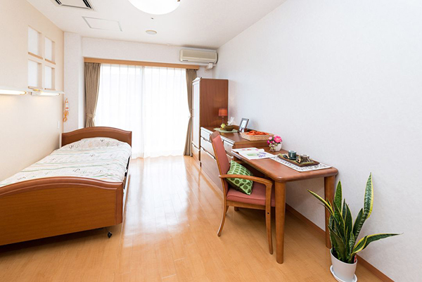 | 設備 | 個室:介護ベッド、洗面台、トイレ、エアコン、椅子2脚、箪笥、クローゼット・テーブル、TV端子、電話ジャック、カーテン、収納 |