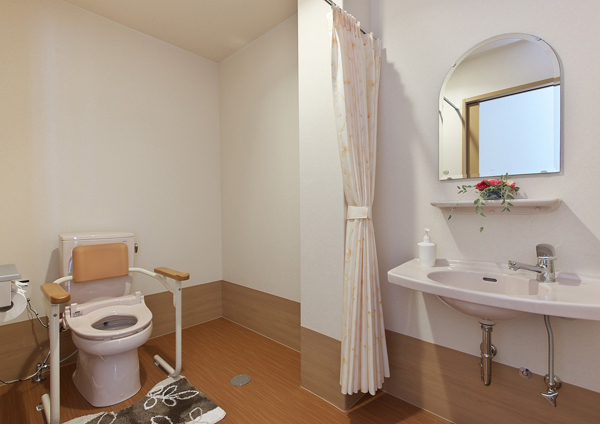 介護用トイレを設置しており、広い間口を設けておりますので、車椅子のままでも快適にご利用頂けます。