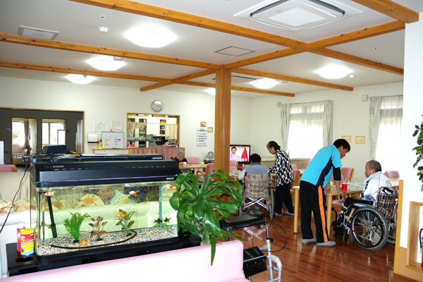広々とした共同スペースではレクリエーションや談話を楽しんだり、美味しい手作りのお食事をいただいたり、ご利用者がゆっくりとお過ごし頂ける環境となっております。