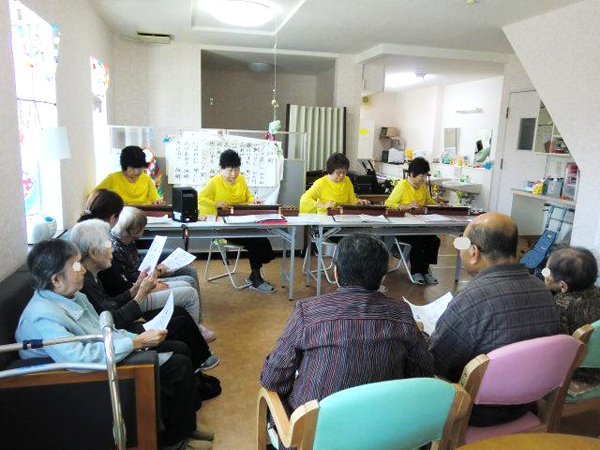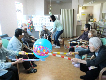 小規模デイサービスならではのアットホーム感を感じていただけます。午前中は入浴後に個別機能訓練を受けていただき、その後アクティビティを楽しんでいただいています。また午後からは、身体を動かす運動レクリエーションを利用者様全員で参加していただいて楽しい時間を過ごしていただいています。なお、当事業所は小規模デイサービスでは数少ない、配置された看護師による対応可能です。お気軽にご相談ください。