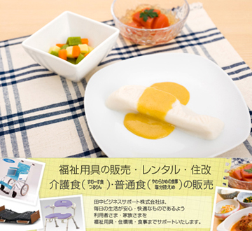 田中ビジネスサポート株式会社では、真空調理:クックチル調理食品の販売/福祉用具の販売・貸与、すむーす食つるりん(介護食)総販売代理店/倉庫(荷物保管・管理) などを行っております。