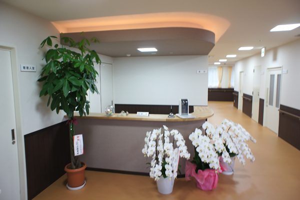 こちらの受付にて、ご利用者様のご家族さまなどをお迎えしております。