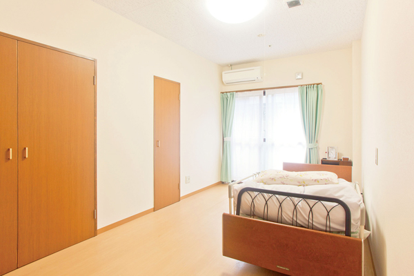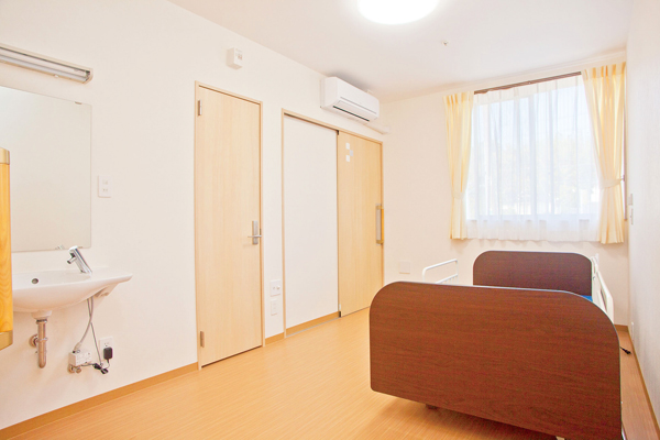 使いやすさにこだわった居室には、トイレ・ベッド・洗面台・エアコン・テレビ回線・クローゼット・スプリンクラー・ナースコールが標準設置されております。