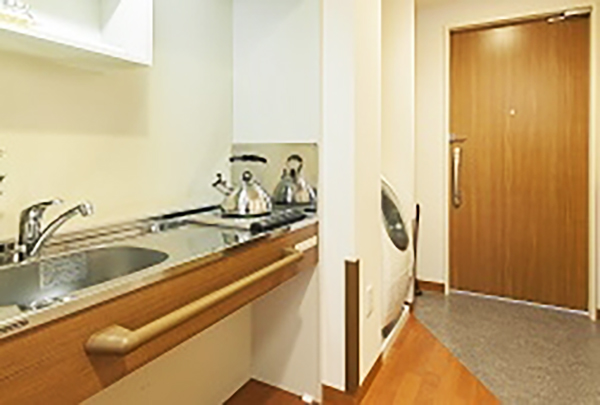 各居室にミニキッチンや洗濯機スペースがあり、ご自身での調理や洗濯も可能。もちろん外部サービスのご利用も可能です。