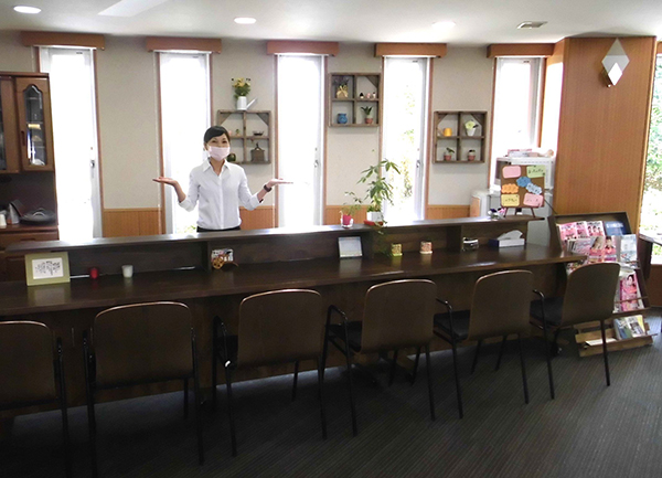 cafeカウンターでは介護スタッフが、いつも美味しいコーヒーやお茶を用意しています。