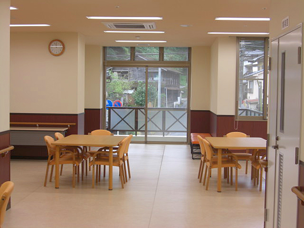 食堂にてお食事をご提供します。五つの実ではご利用者様への食事は施設の栄養士の管理の下、外部委託業者にお願いし施設一階の厨房にて、温かい食事をご提供しています。季節ごとの旬の食材を使った料理をはじめ、施設のイベントでもある鍋料理や焼き肉・おやつ作りなど見た目でも楽しめるように様々な工夫をしています。