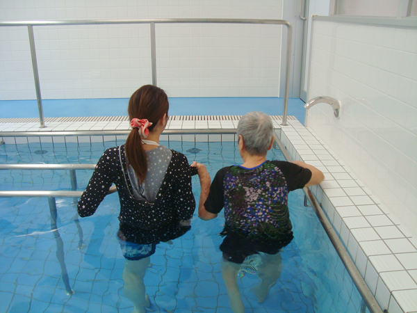 水中での浮力を利用し、陸上よりも安易に歩行訓練を行うことが出来る温水ウォーキングプール