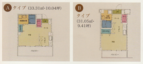 AタイプとBタイプの二種類のお部屋タイプをご用意しております。31.05㎡〜33.31㎡と広々としたつくりとなっております。
