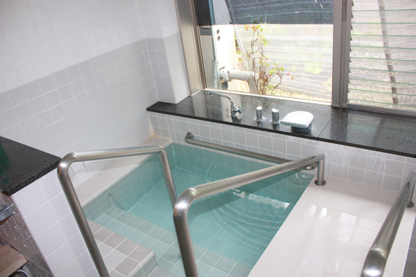畳敷きの浴室。どのような状態になっても全てスタッフの温かい手で気持ちよく自由にお入り頂けます。