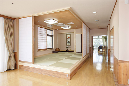 畳の小上がりがある和室です。我家にいるような安心とやすらぎの個室に入所いただき、
