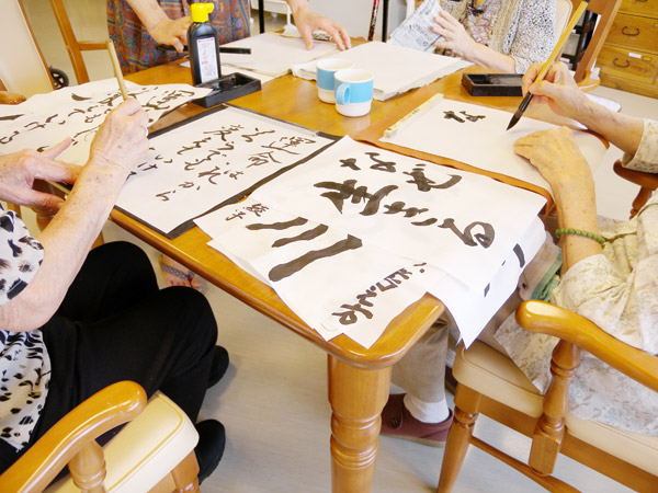 手芸や園芸、パソコン、カメラなどの作業活動から、脳活性学習、書道、映画鑑賞、歩行訓練、生活リハビリ、筋力向上、マッサージ等お一人おひとりに合わせ様々な活動を行います。