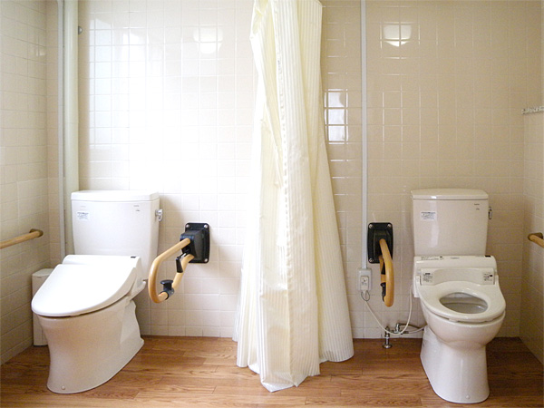 左右対称の広めの作りになっておりますので、片麻痺や車いすの方にもスムーズに対応できる作りです。