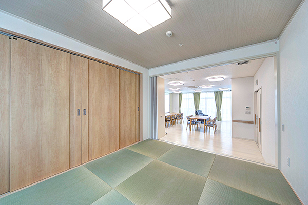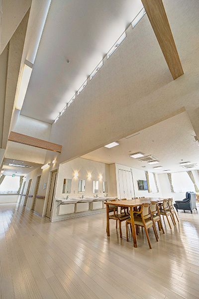 床や壁を白で統一した、明るく清潔感のある建物で「自分自身の家族にも住んでほしい。入居者様に楽しく過ごしてほしい」という想いを感じていただける空間となっております。