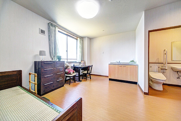 ・介護が軽い方向けの特別室は、全部屋トイレ、お風呂、ミニキッチン付。