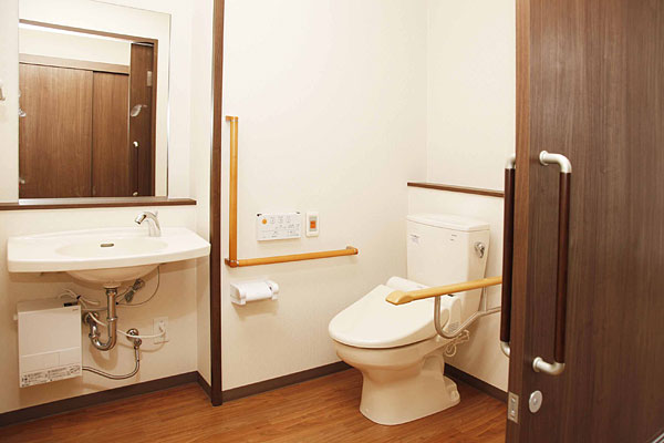 個室にはバリアフリー対応の洗面台とトイレが設置してあります。