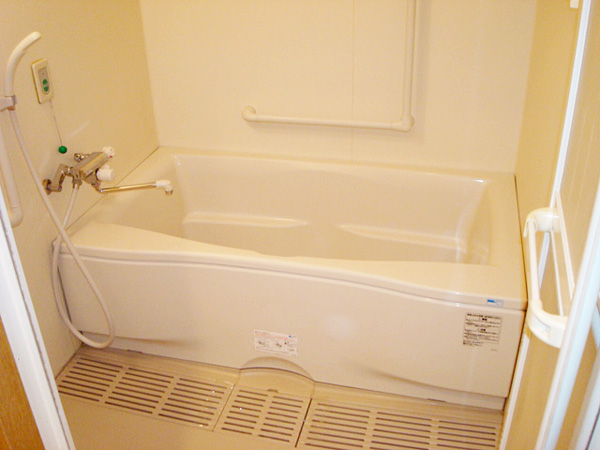 浴槽もバリアフリーでスロープ付きです。緊急通報システム設置。