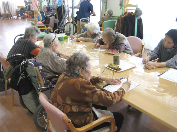 身体ばかりでなく頭の体操も。計算問題に取り組み中。