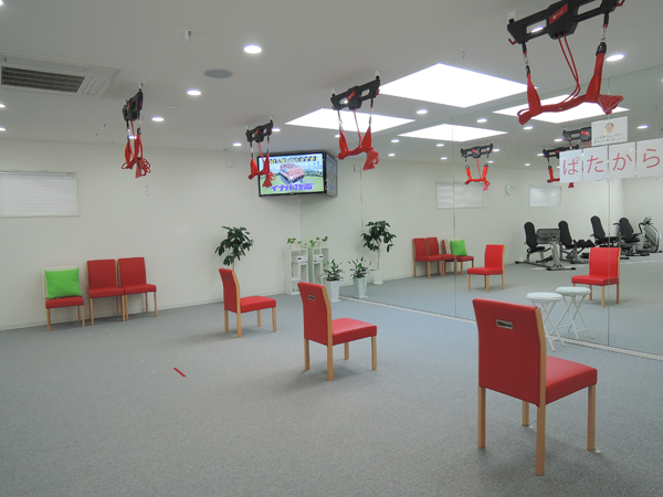 スポーツジムのような雰囲気です。 「以前はスポーツジムに通っていましたが足が悪くなり通うのが大変でやめてしまったのですが送迎付きで楽なので気に入りました。」とご利用者さま