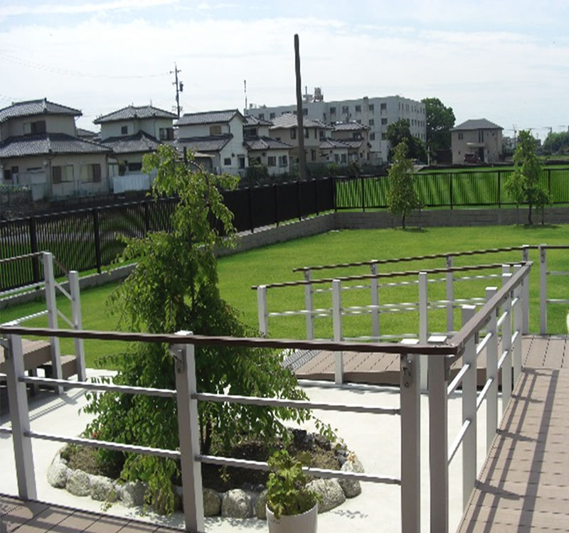 施設には広い芝生の庭があり、天気の良い時はお散歩したり、また地域伝統芸能である輪中太鼓の演奏等、各レクレーションにも活用されています。