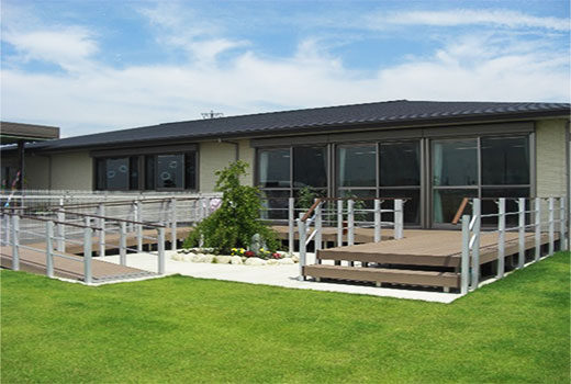施設には広い芝生の庭があり、天気の良い時はお散歩したり、また地域伝統芸能である輪中太鼓の演奏等、各レクレーションにも活用されています。