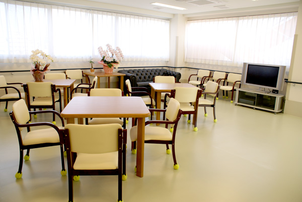 サービス付き高齢者向け住宅の食堂兼共同スペースです。